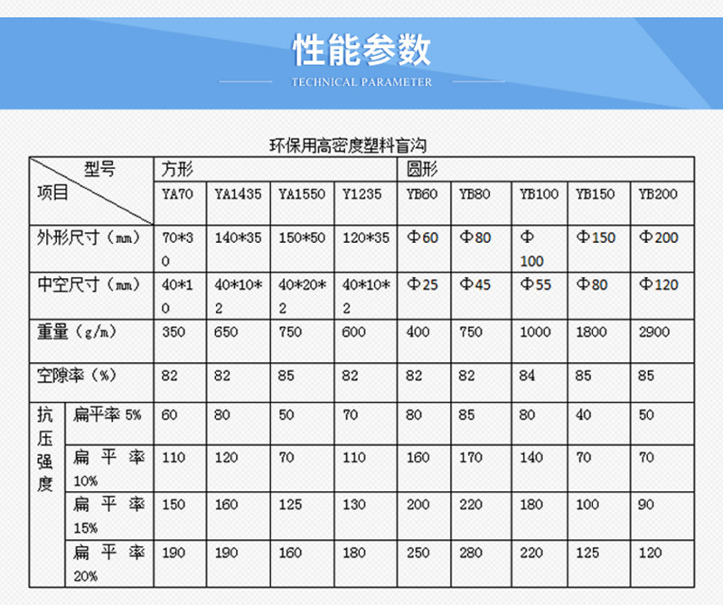 6、由于有以上特點,故對以往傳統盲溝出現的各種問題,如不均勻沉降或因超載引起部分閉塞,被壓壞導致空隙全無引起功能中斷的問題,可通過塑料盲溝材解決。