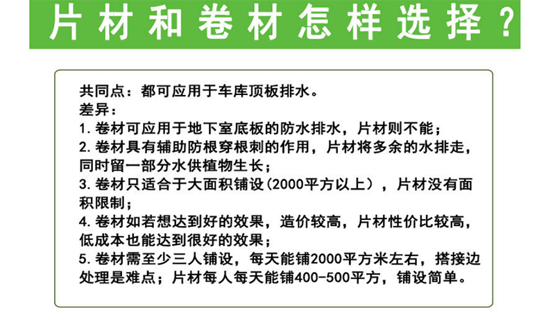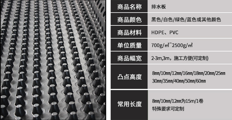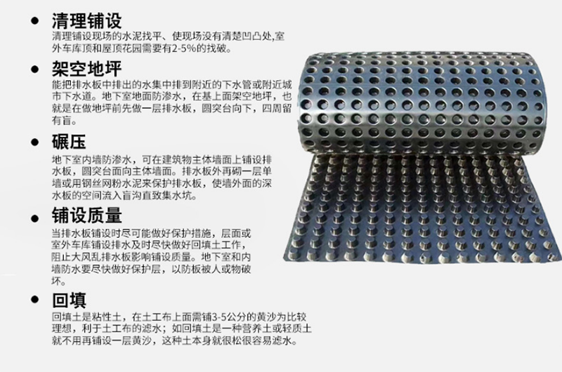 1、導水排水性。2、防水性能。3、排水板保護防護性。4、隔音及通風防潮功能。